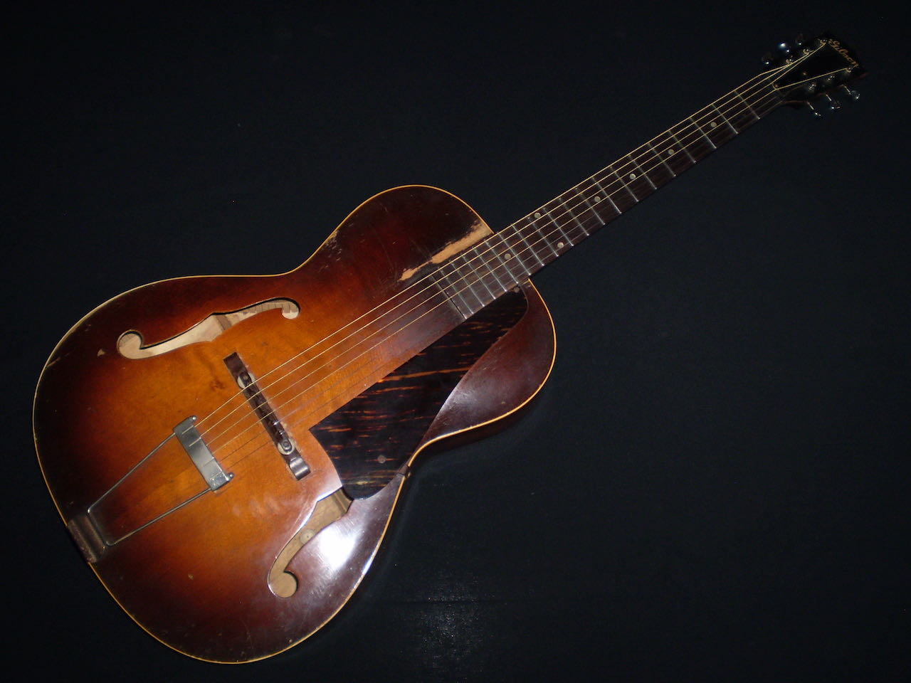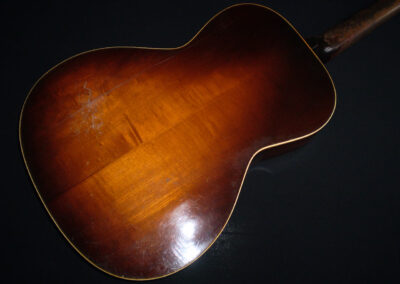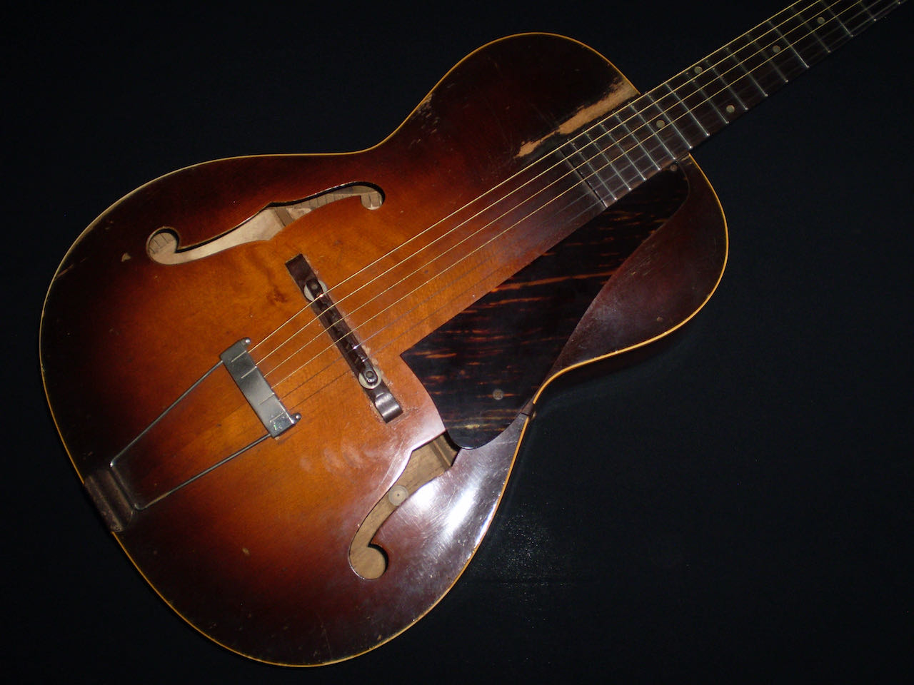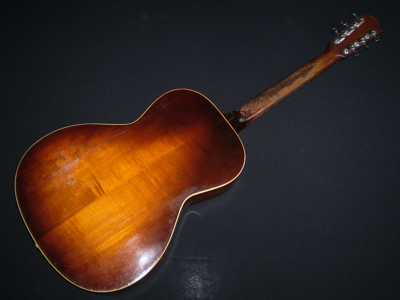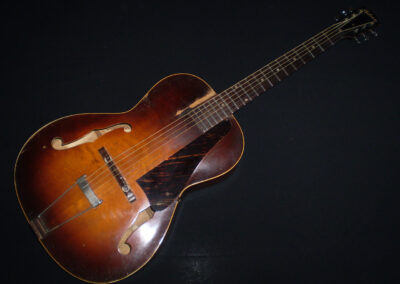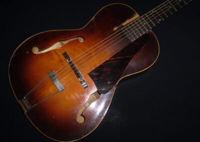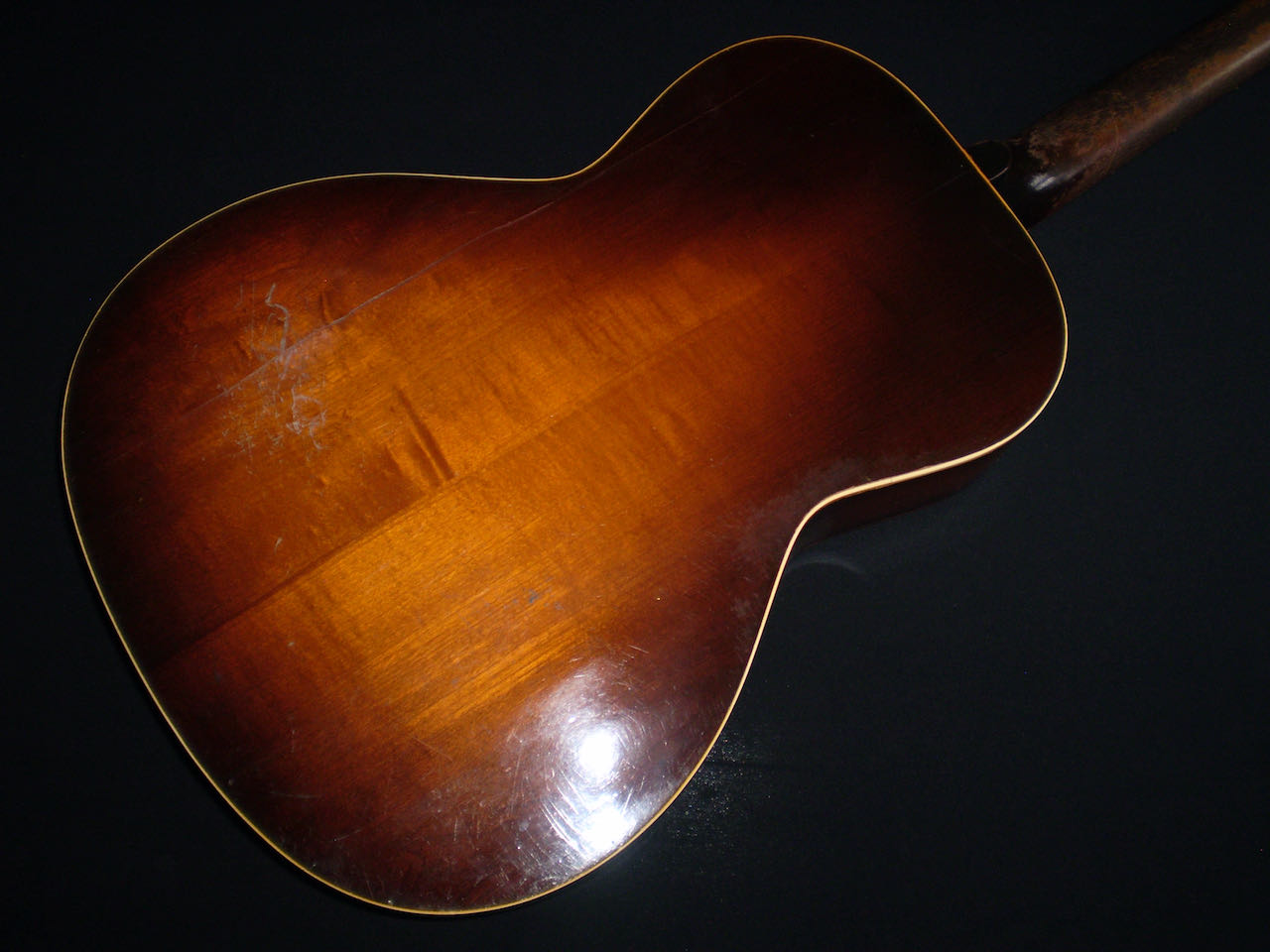 NEW ARRIVAL By 1941 the Gibson L30 featured sunburst back and sides, rather than plain brown, making it visually more appealing, and this is a beautiful example in a fantastic looking faded tobacco sunburst, with very desirable script logo. The tone is voiced beautifully for blues, jazz and swing, has a very comfortable neck – quite chunky – and a great playing action all the way up the neck. It has the kind of playwear you’d expect from an 82 year old guitar, and lots of great looking lacquer checking. The guitar is in good condition, with a repaired back crack, and just back from a pro refret. This guitar looks, feels and sounds fantastic, and has the kind of vintage vibe that is impossible to replicate in a reissue. It comes in a non original hard case.