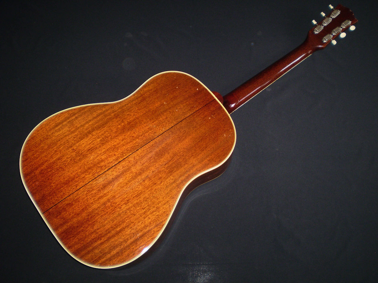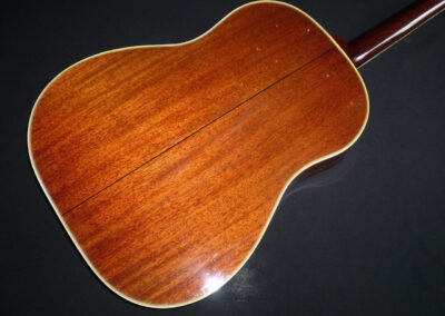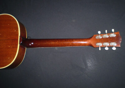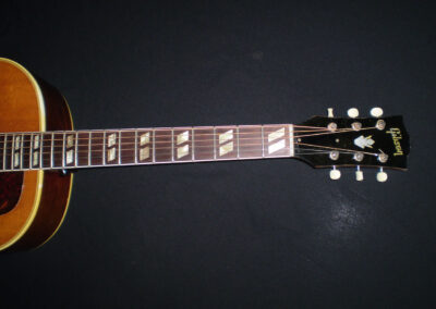 SOLD 60’s Gibson slope shouldered dreadnoughts are fantastic guitars, but the jump to a 50’s model is incredible, in fact I could run out of superlatives describing its sound. So let’s just say it’s everything you could want from a vintage Gibson, hugely versatile, well balanced with great resonance and clarity, capable of any style, and a truly inspirational guitar to play. It’s all about the balance between feel and tone. This Country Western is in excellent condition, the honeyed Spruce top contrasting beautifully with the tortoise pickguard. The neck feels full, and the Brazilian Rosewood fingerboard feels very responsive. There’s just the right amount of playwear, so you know it’s been played and loved in equal amounts. It has the very common repaired soundhole crack, plus a plugged jack socket on the lower rim. All in all a fine example of why Gibson dreadnoughts are so revered. Pick it up and you won’t want to put it down. The guitar has a K and K pickup fitted, and comes in a later Gibson hard case.