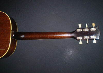 NEW ARRIVAL Possibly the most recognisable of all Gibson acoustics, the J160E was made famous by the Beatles, and as such if you want to recreate that unique sound – this is the only guitar that gets you there. There have been various modern reissues by Gibson that have the look, but only a genuine vintage example will have the true sound, character, vibe and feel. Both acoustic and plugged in, it has ‘that’ sound. The guitar feels very comfortable to play, with an easy action – it’s in good condition for a 66 year old guitar. The top has been oversprayed because there are some cracks in the lacquer on the shoulders, there’s some sinking around the soundhole, and one repaired back crack. There’s a replacement Lindy Fralin pickup which sounds very authentic – possibly because it’s on an original body. The tuners are original, but one of the buttons has been replaced. All in all it’s a fantastic playing and sounding guitar, and just feels like a piece of musical history. It comes in a non original hard case.
