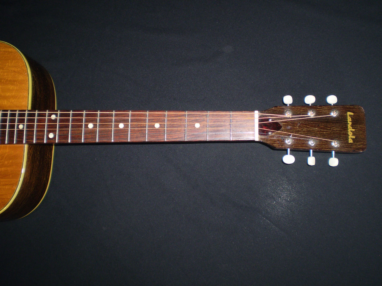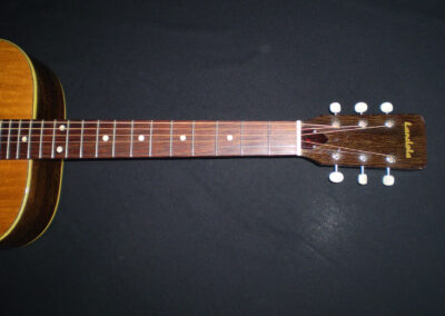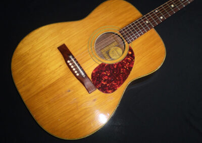NEW ARRIVAL Don’t be fooled by the price, 60’s Landola acoustics are fantastic value for money, and represent great 60’s tone on a budget. Not to be confused with later Landolas, their 60’s guitars were hand built in Finland to a high standard. The V66 Buffalo is Landola’s best known model, and sits somewhere between a 00 and a 000 size, with Spruce top and Mahogany back and sides. It has a rich, dark tone, very resonant with great volume and long sustain. The body size would suggest it’s more of a fingerpicker, but the strummed sound is impressive, and flat picked even works for bluegrass. Although the guitar is in good condition for its age, it has a huge amount of lacquer checking, which only adds to the appeal for me. A great looking, easy playing, 60’s acoustic. Very cool.