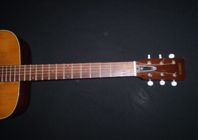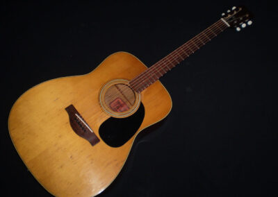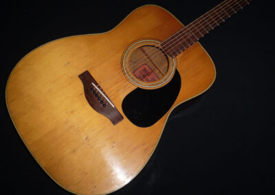 NEW ARRIVAL Along with the FG-140 and FG-300, the Yamaha FG-180 was one of the original “red label” six-string jumbo acoustics built in Japan starting in 1969, and it became the flagship guitar for Yamaha in the late sixties and early seventies. This is one of the best sounding examples I’ve played, and it captures a moment in time when – certainly in the folk scene – anyone who was anyone played a Yamaha. The guitar has great depth and warmth to its tone. When strummed it has a room filling sound, when fingerpicked it has great clarity and detail. It’s in well played condition, with no cracks or repairs, and upgraded Kluson tuners.