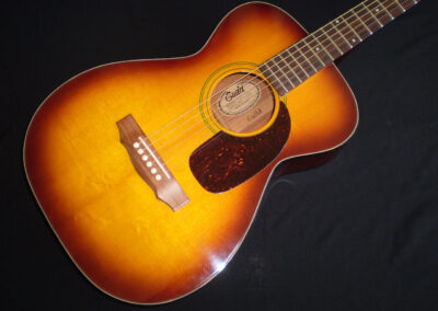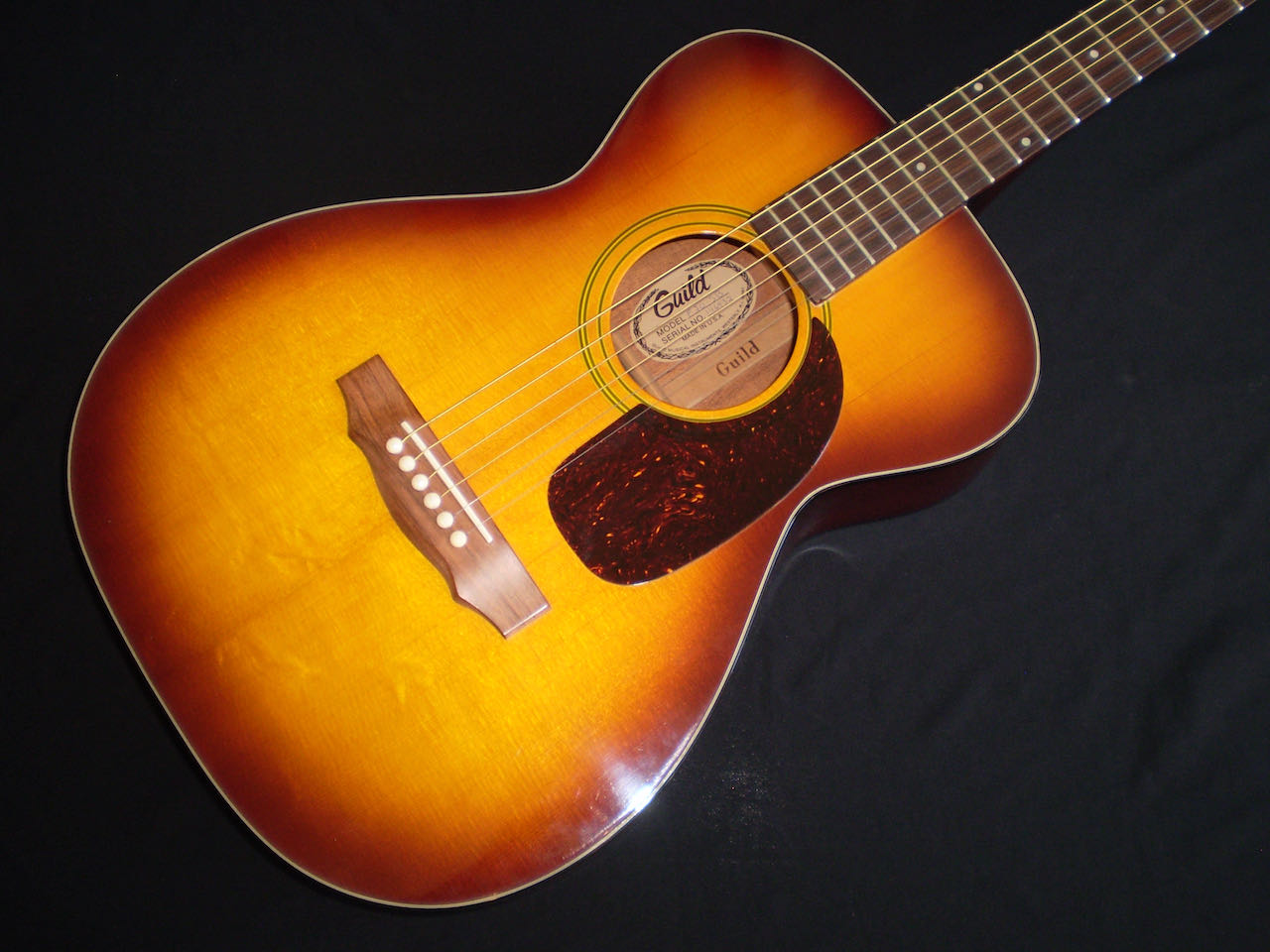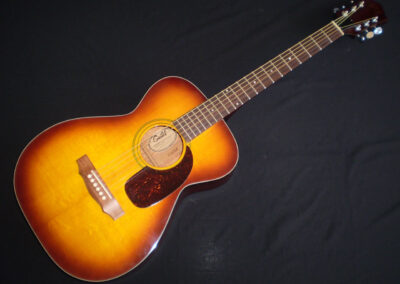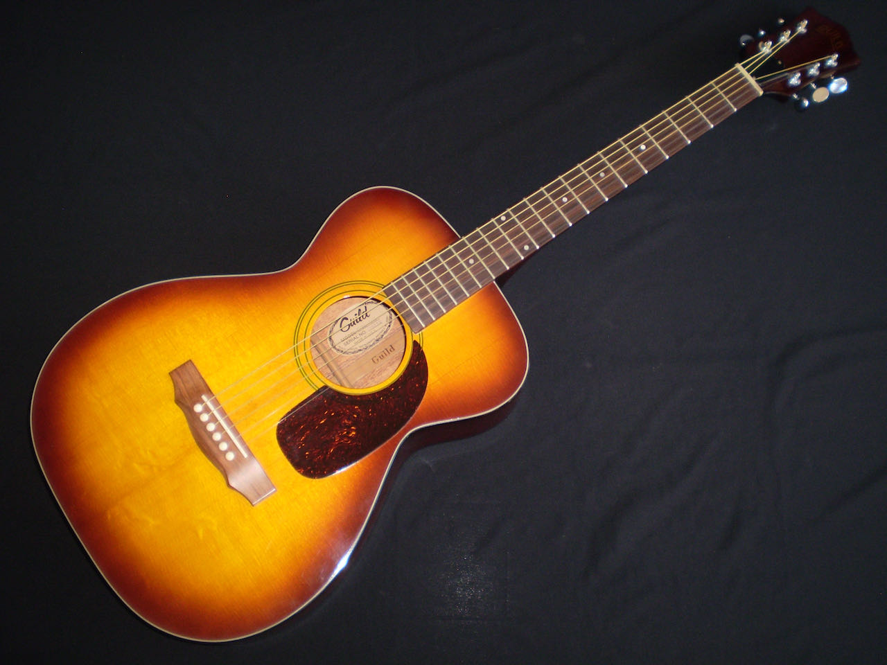NEW ARRIVAL The Guild F20 is the Spruce topped equivalent of the better known M20 – the all Mahogany model famously played by Nick Drake – and is a great example of a difficult to find model – particularly is sunburst. Tonally it has a warm sound, with surprising depth for a small bodied guitar, there is a sparkle in the mid range, and treble notes ring very cleanly. The guitar is a great fingerpicker, but has a full enough sound to work well with strumming. The guitar is in excellent condition, all original with no cracks or repairs, and great playability. It even comes in it’s original hard case with original receipt and hang tag.