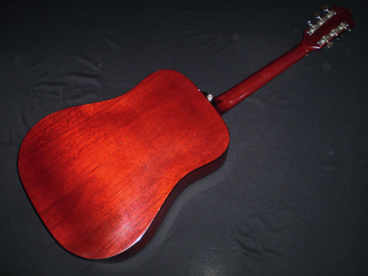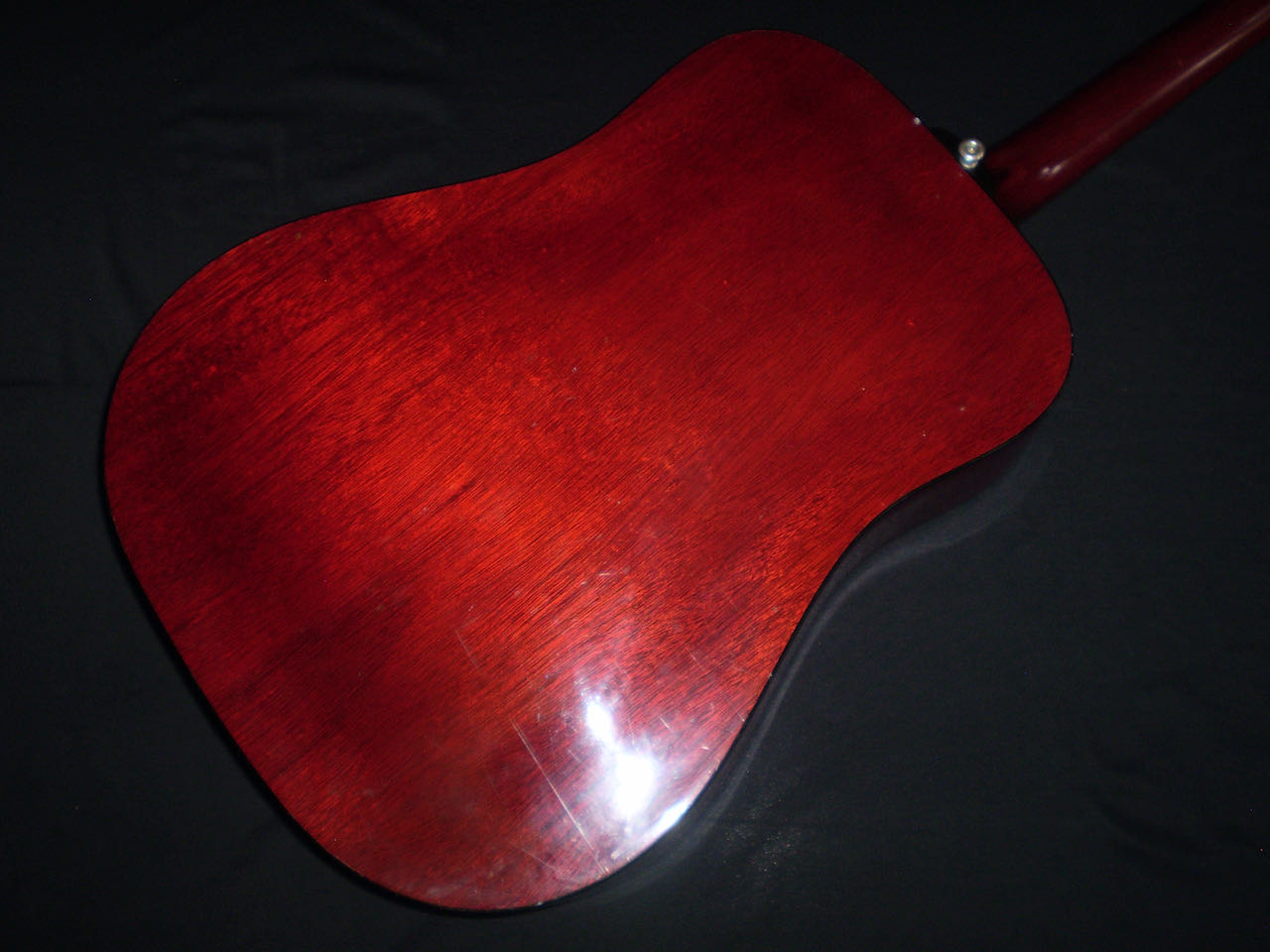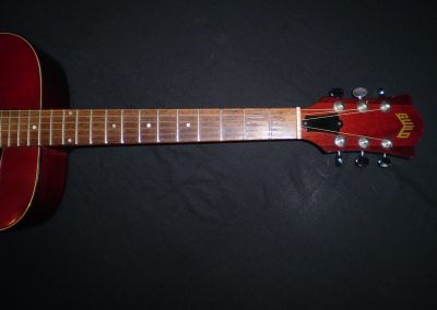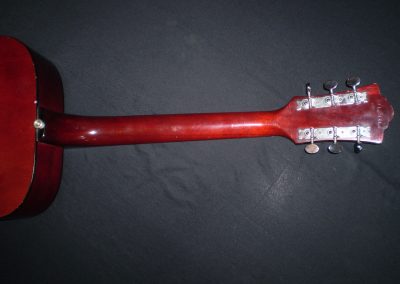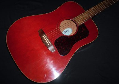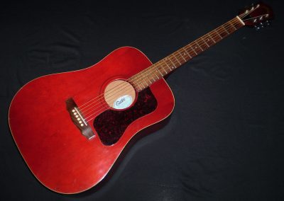 NEW ARRIVAL The Guild D25 represents a very affordable way of owning a vintage American made acoustic. Made in the famous Westerly factory in Rhode Island, the Guild D25 is a dreadnought shape, with a Spruce top and an arched Mahogany back, stained a vivid cherry. Having an arched back pushes the air movement directly towards the soundhole, giving more punch to the mid range. Tonally it has a warm, rich, sound, good bass response yet very well balanced and it’s very playable with a comfortable action. The guitar’s in good condition, all original, with just a few nicks and dings. The guitar comes in a non original hard case.