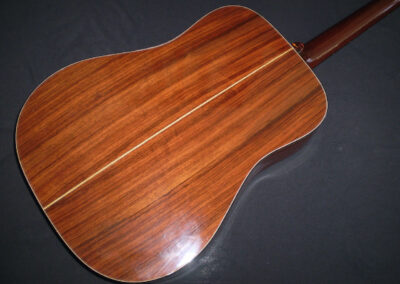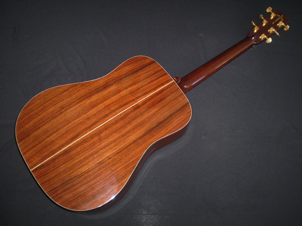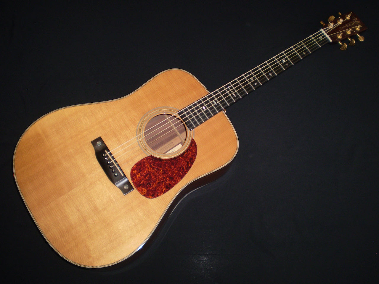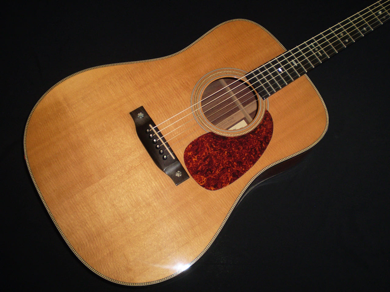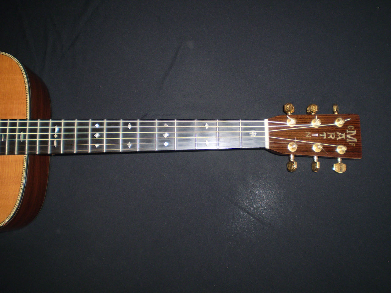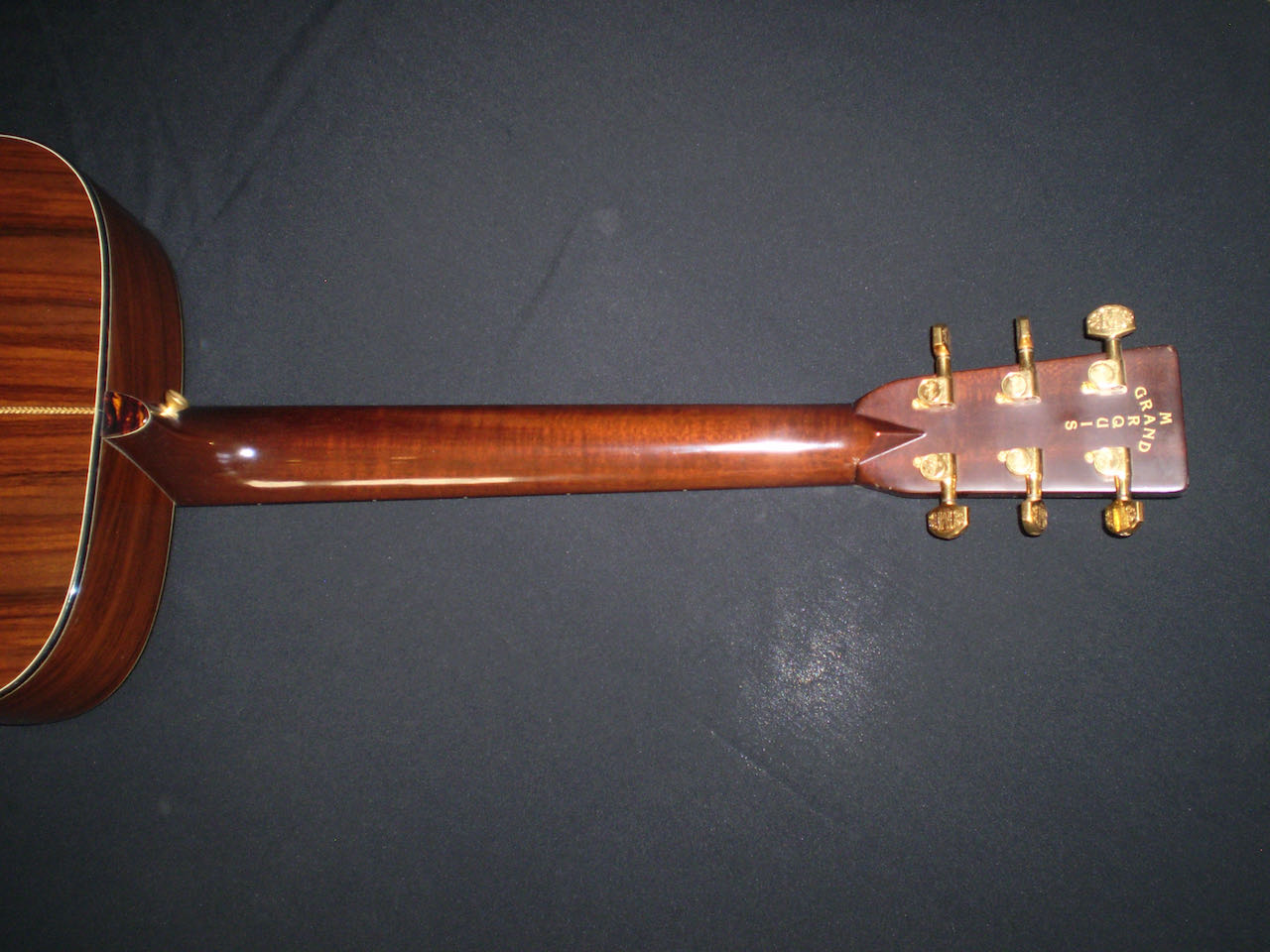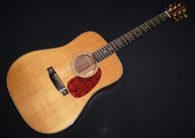 NEW ARRIVAL Just when you think you’ve played all the great HD28’s, an absolute belter comes along. This is my first Grand Marquis model, and it’s spectacular….. 1989 is the first incarnation of the Grand Marquis made in extremely limited numbers, the guitar has very high end features in a classic, but not too over the top finish. There’s an Adirondack Spruce top over highly figured Indian Rosewood back and sides. The body has herringbone rosette and purfling, tortoise pickguard and body binding, and a hand signed C.F. Martin label. The fingerboard and bridge are beautifully inlaid with abalone style 45 snowflake inlays and the headstock features a block inlay with engraved tuners. This Grand Marquis is a luxurious and sophisticated sounding version of an HD-28. There’s real power coming from the Adirondack top, very resonant with great bass response, but the ability to handle delicate playing with subtlety and nuance – a true all rounder. The guitar is in very good condition, with just a few light surface dings. It has an active under saddle pickup fitted and comes in a non original hard case.