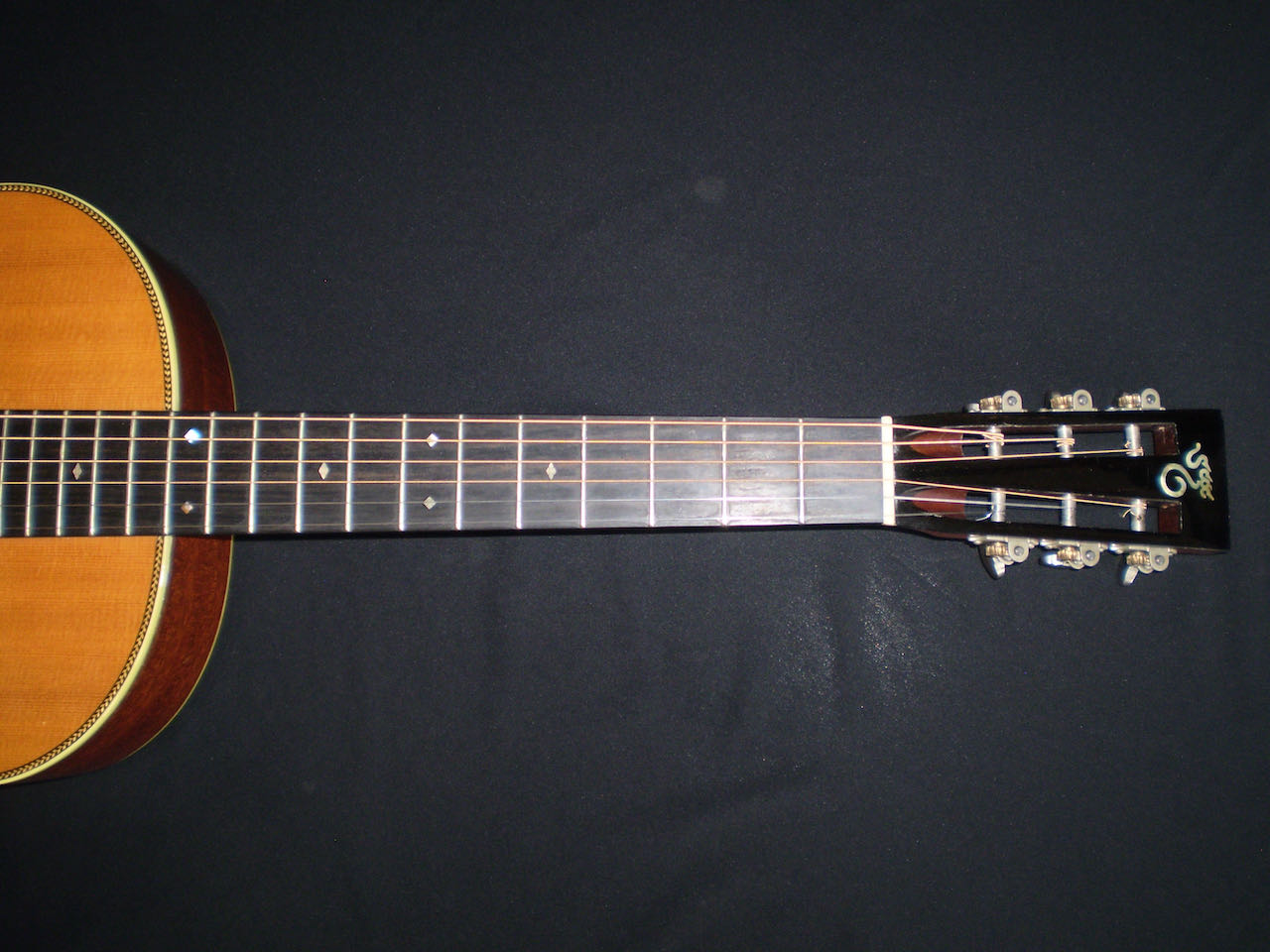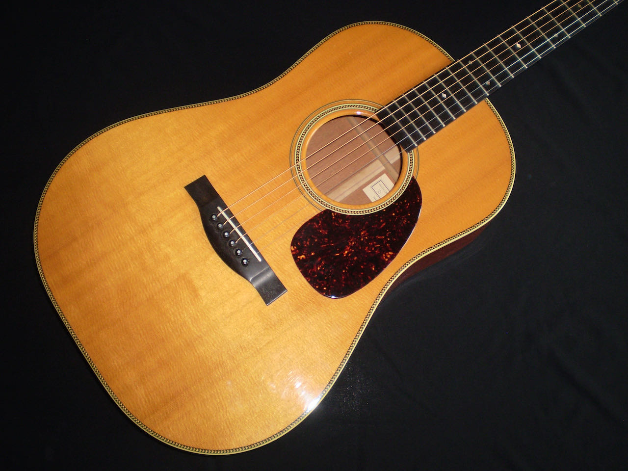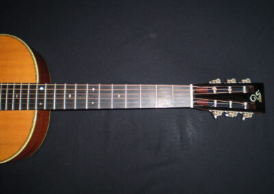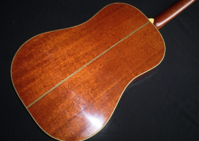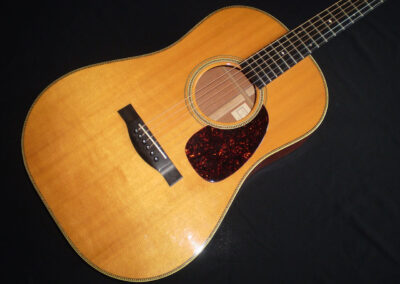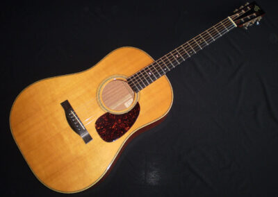 NEW ARRIVAL Hand made by Santa Cruz in California, the D-12 is the original 12 fret dreadnought shape, that was first an oversized Hawaiian guitar over a century ago. It has a Sitka Spruce top and Honduras Mahogany back and sides, with scallop bracing, a slot headstock, and features an Ebony fretboard and bridge, plus Waverley tuners. Tonally it’s fantastic, the longer body with bridge placed closer to the soundhole, gives a more open tone with an airy bass, not found on a 14 fret model. The Mahogany back and sides give a real warmth to the tone, while the Spruce top allows the sound to cut through any mix. The herringbone trim and Abalone fingerboard inlays add a touch of class, as well as a nod to the prewar era. All in all it’s a powerhouse of a guitar, and is a joy to play. The guitar’s in very good condition, with just a couple of dings near the end pin, and comes in it’s original deluxe hard case.