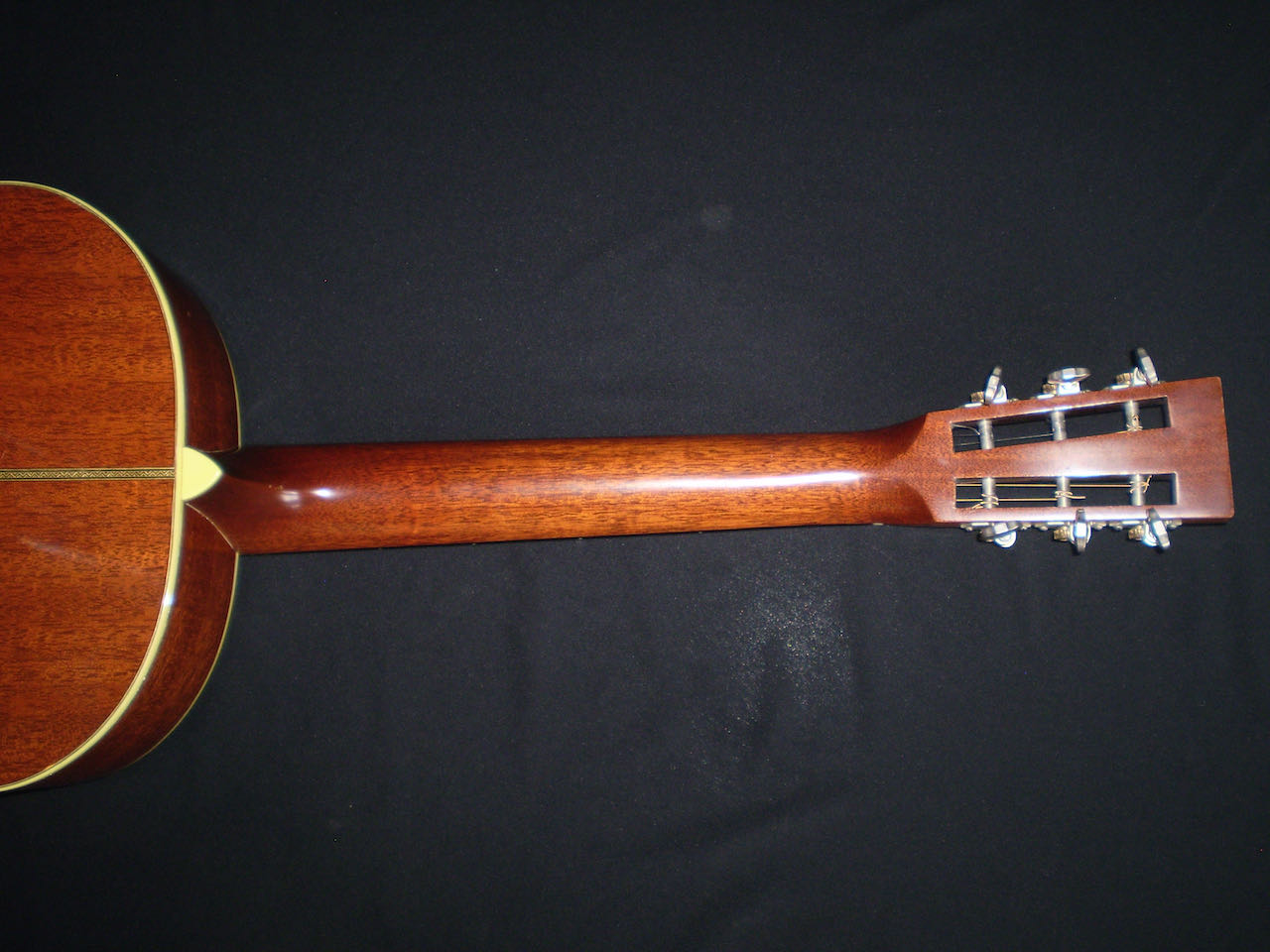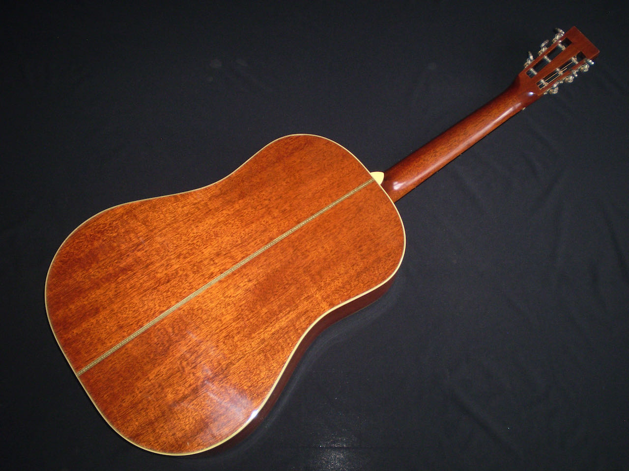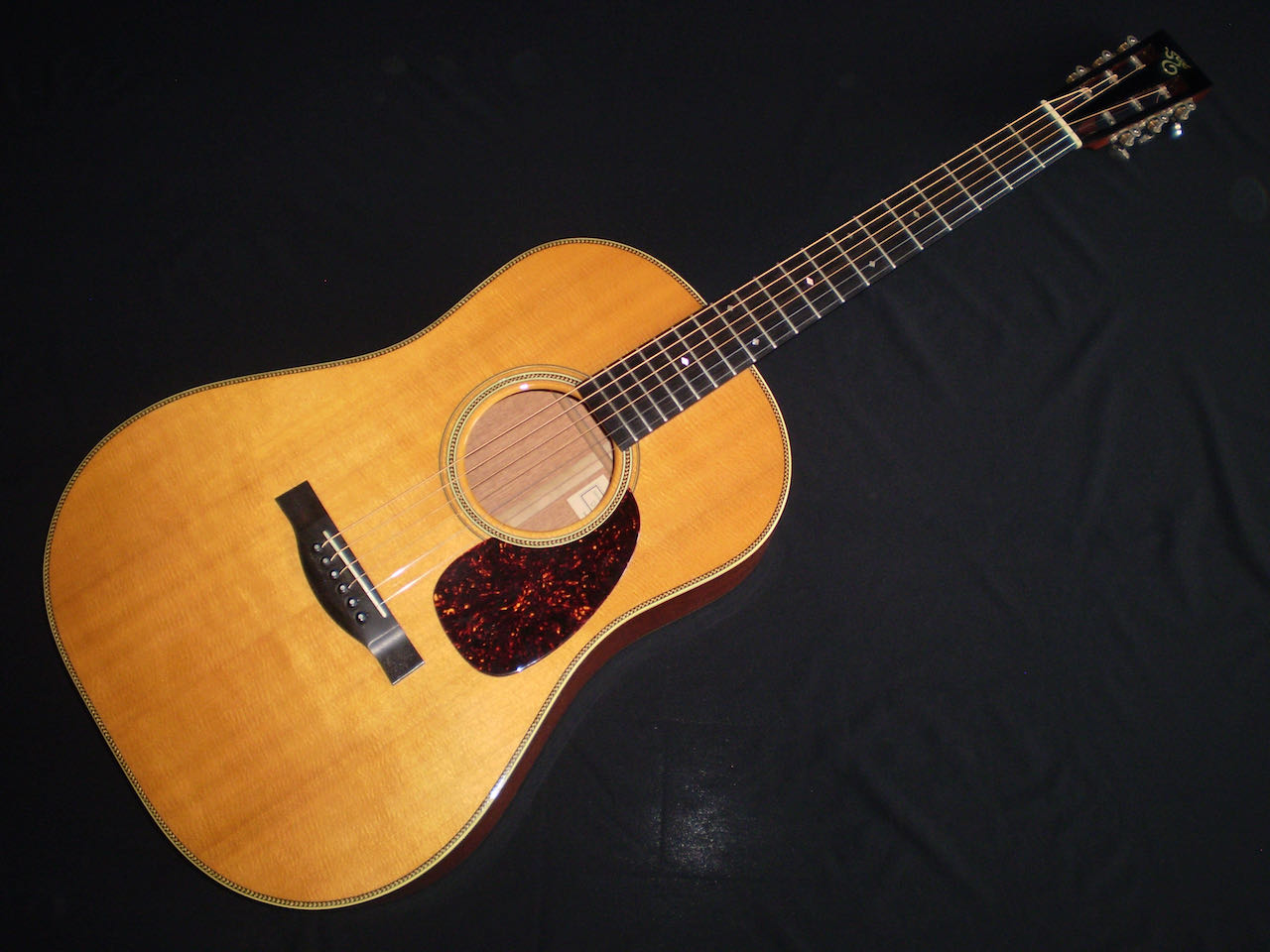 NEW ARRIVAL Hand made by Santa Cruz in California, the D-12 is the original 12 fret dreadnought shape, that was first an oversized Hawaiian guitar over a century ago. It has a Sitka Spruce top and Honduras Mahogany back and sides, with scallop bracing, a slot headstock, and features an Ebony fretboard and bridge, plus Waverley tuners. Tonally it’s fantastic, the longer body with bridge placed closer to the soundhole, gives a more open tone with an airy bass, not found on a 14 fret model. The Mahogany back and sides give a real warmth to the tone, while the Spruce top allows the sound to cut through any mix. The herringbone trim and Abalone fingerboard inlays add a touch of class, as well as a nod to the prewar era. All in all it’s a powerhouse of a guitar, and is a joy to play. The guitar’s in very good condition, with just a couple of dings near the end pin, and comes in it’s original deluxe hard case.