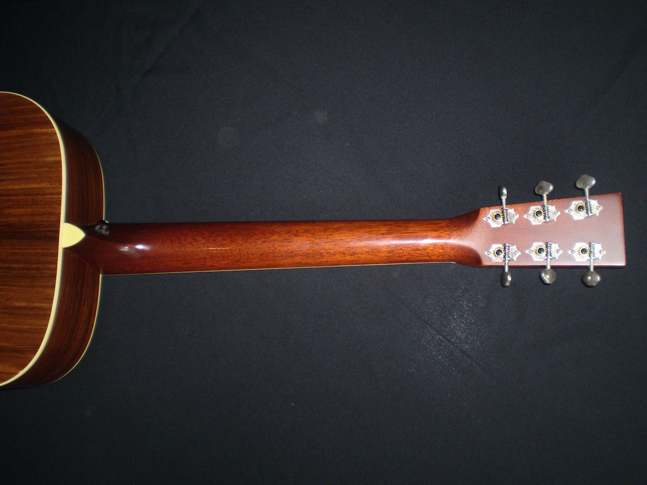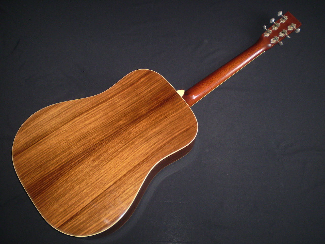 NEW ARRIVAL Santa Cruz have become known as masters of the art of guitar making, taking traditional designs and improving on them. The D/E guitar features a Sitka Spruce top, Rosewood back and sides, with an Ebony fingerboard and bridge. This model was only made for a short time, specifically for the export market (hence the designation D/E). It differs from the standard Santa Cruz D in that the top braces are redesigned to taper and not notch into the linings so that the top vibrates more freely, giving the guitar incredible presence and bass response, yet retaining a good balance with strong midrange and bright powerful trebles. This means the guitar works very well for fingerstyle playing as well as powerful rhythm bass lines. It’s seriously one of the best dreadnoughts you will ever play. It’s in excellent condition, and comes in a Hiscox flight case.