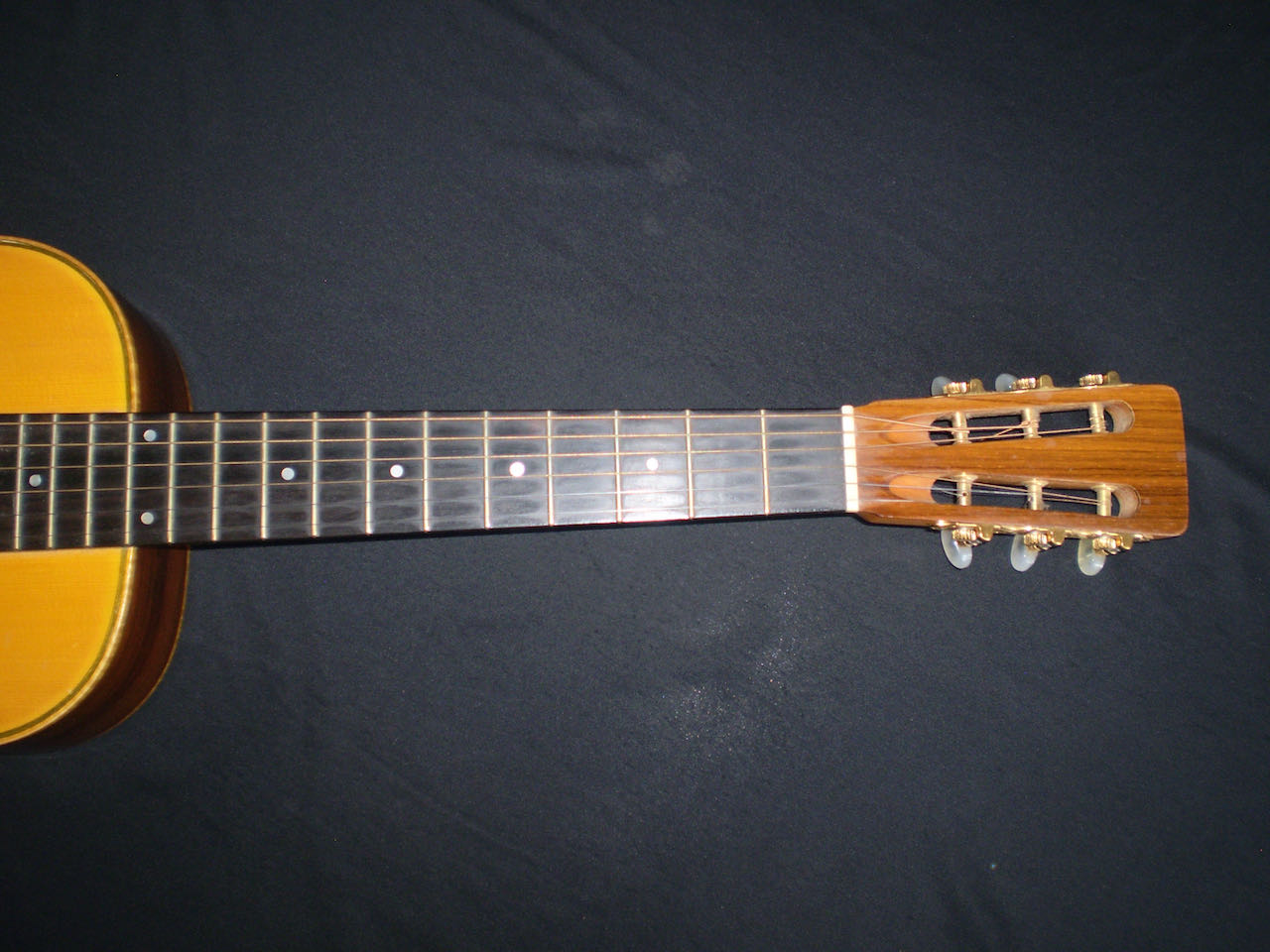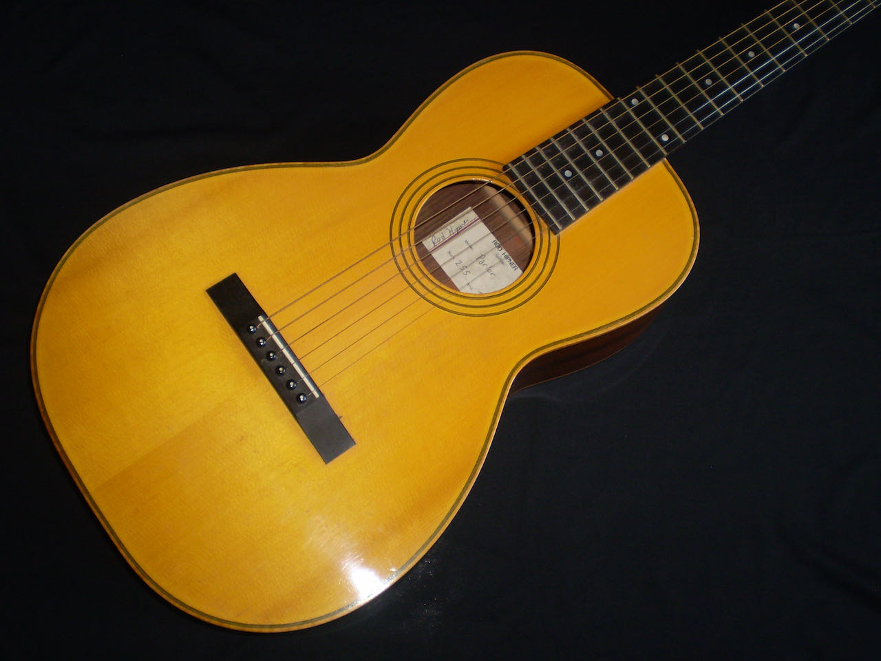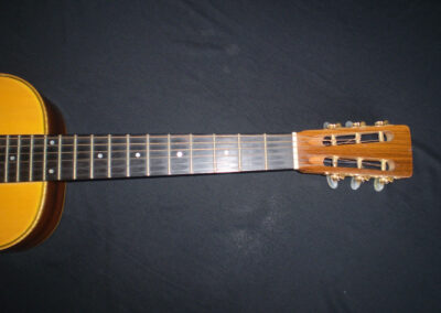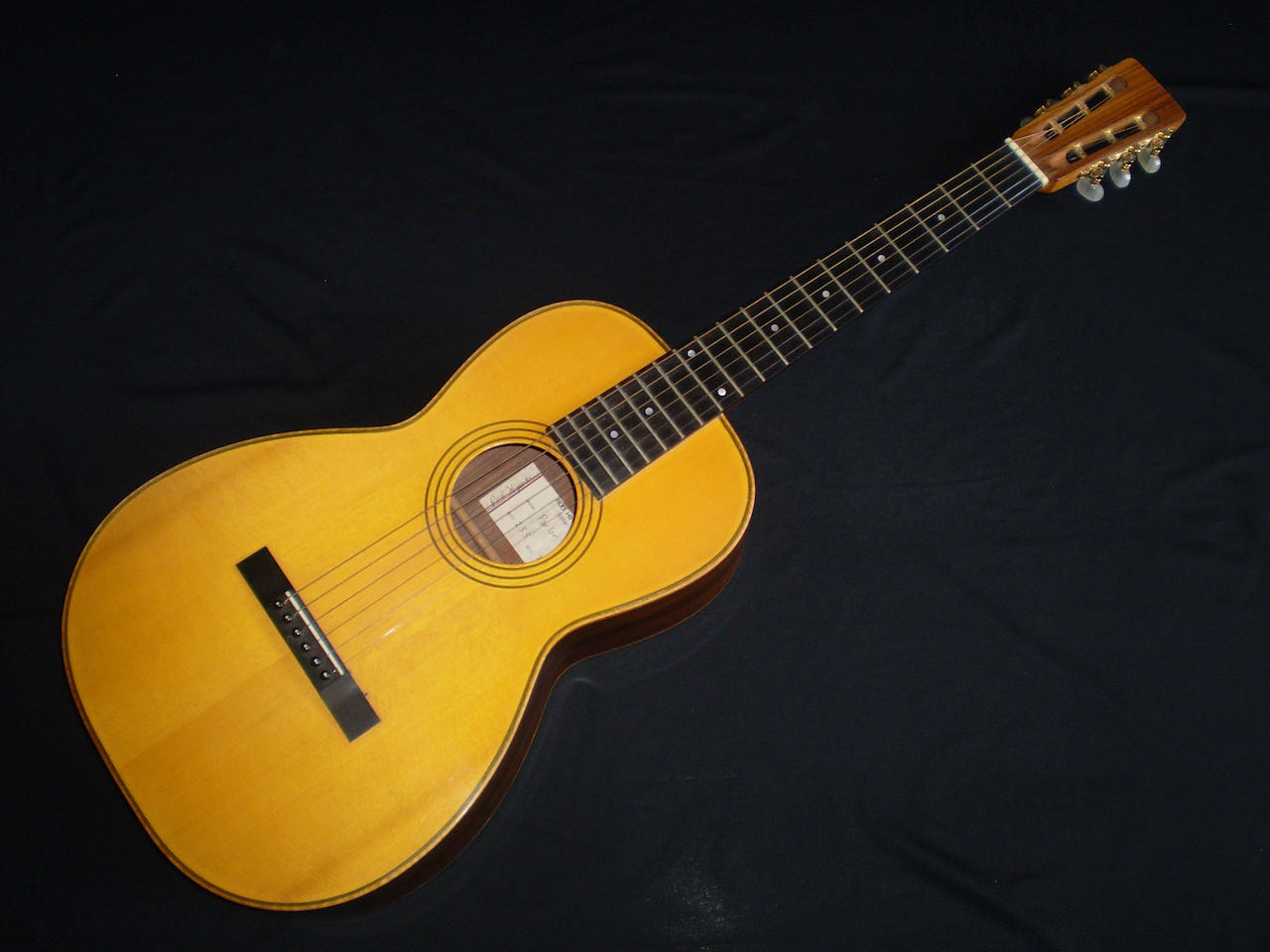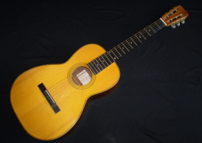 NEW ARRIVAL Based in Washington, Darren Hipner is better known for his high end Spanish guitars, but here he’s produced a great quality steel strung parlour guitar, with a neck that feels closer to a Spanish style with flat fingerboard. As a sign of the build quality, the guitar has an Engelmann Spruce top with Brazilian Rosewood back and sides, a 12 fret neck, Ebony fingerboard and bridge, and Maple binding. The tone is quite direct, with good attack and long sustain. The Engelmann provides warmth, and the Brazilian adds a clarity, and a shimmer to the notes as they bloom. It works particularly well with fingerstyle work, rich and evenly balanced. The guitar is very versatile, handling blues, folk and country with ease. As a 24 year old guitar, the tone has matured well, and it’s in very good condition for it’s age, with just one small lacquer crack on the back. The guitar comes in it’s original hard case.