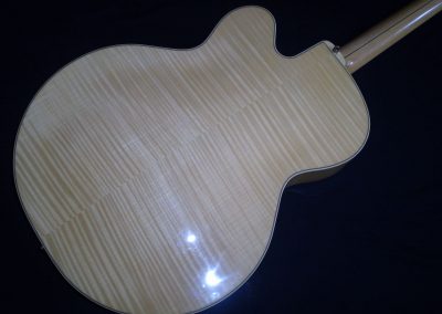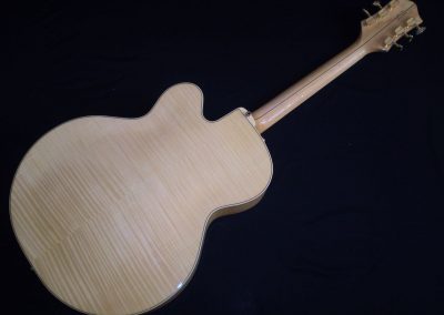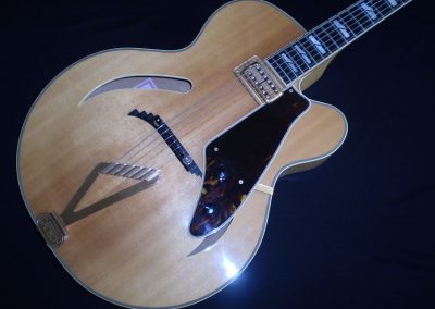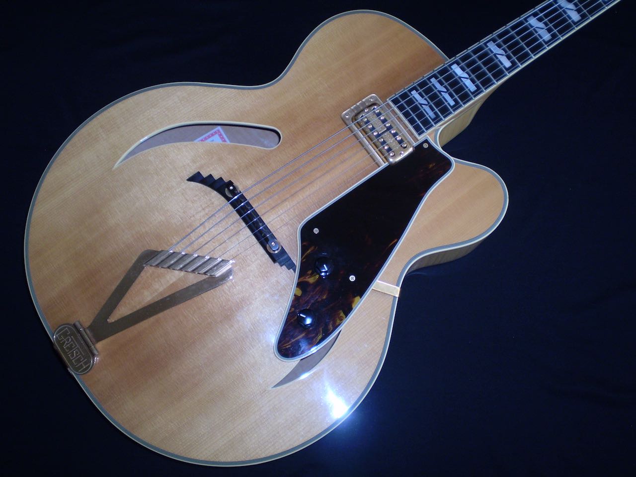 SOLD The Gretsch Synchromatic G6040MCSS has the classic look and feel of a vintage Gretsch, but features some modern exclusive Gretsch innovations. The guitar has flame Maple back and sides, with a fine-grained Spruce top, a Maple neck and Ebony fretboard. The pickup is a “High Sensitive” Filter’Tron™ which can take you from smooth jazz tones to classic rock ’n’ roll and rockabilly. The guitar features Gretsch’s innovative chromatic tailpiece, which compensates for different string gauges and equalizes tension across all strings. The result is uniform action across all strings and a very smooth playing experience. It also has a Gretsch synchronized bridge, which optimizes the contact between your strings and the top of the guitar. The result is crystal-clear harmonics and incredible richness and sustain across all strings. The guitar is in excellent condition, and comes in it’s original deluxe hard case.