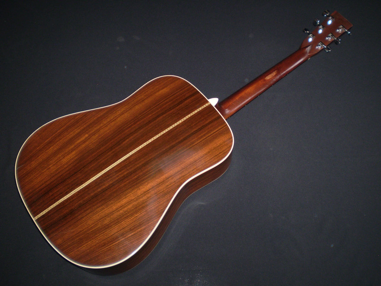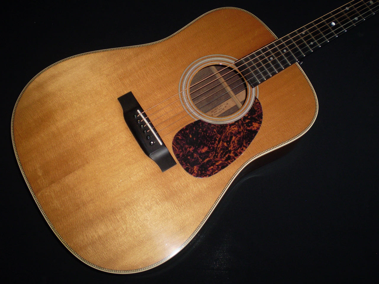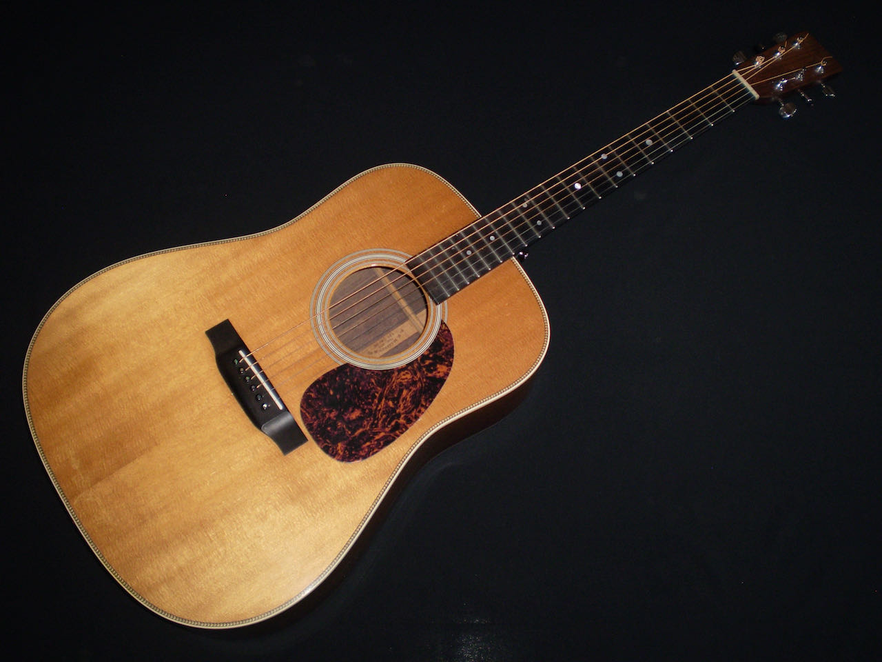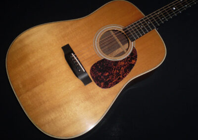 NEW ARRIVAL The HD28 is noticeably different to a D28. Not just the herringbone trim that gives it a more deluxe look, but the scalloped bracing which allows the top to resonate more, giving a more lively playing experience. Never boomy, but more dynamic sounding. It’s a very versatile guitar, handling strumming and flat picking equally well, but also very comfortable with more gentle fingerstyle – a real all rounder. For an 18 year old guitar, the tone has really matured, a little richer and fuller sounding than a younger model. It’s in good condition with a reasonable amount of playwear, but no cracks or repairs.The guitar is really playable, with a comfortable neck, and comes in an upgraded SKB flight case.
