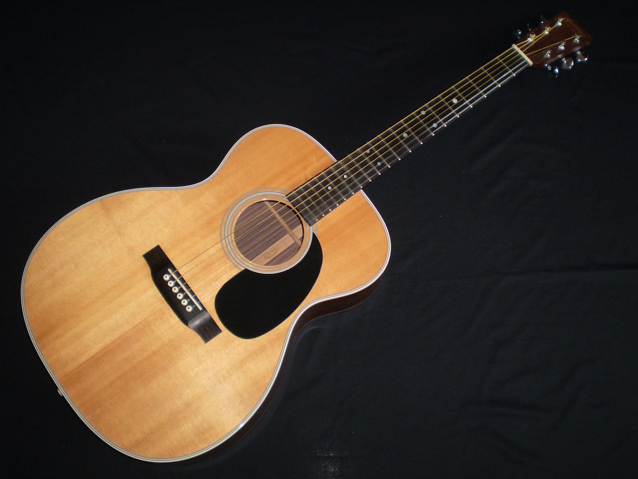 NEW ARRIVAL The Martin 000-28 is pretty much the industry standard fingerstyle guitar, found in most recording studios, and played by many of the greats. It’s a Spruce topped 000 guitar with Indian Rosewood back and sides, and at 15 years old has a real maturity to it’s tone – very open and beautifully balanced. It has a rich sustain, with good attack and clarity on single notes, making it a very versatile guitar, capable of all styles of play. The Spruce top has turned a warm honey colour, and the Rosewood back and sides have a lovely patina. The guitar’s in excellent condition, with signs of general playwear, and plays very easily. There’s a reason why it’s such a classic – once played never forgotten. It comes in it’s original Martin hard case.