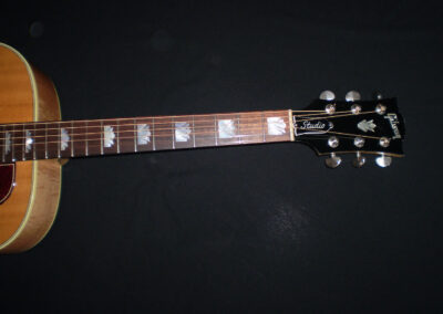 NEW ARRIVAL Gibson’s Studio range gives the chance to buy classic Gibson models in a stripped back format. There’s nothing budget about them, just some of the bells and some of the whistles are missing. With the SJ200 the classic Spruce / Flame Maple jumbo has a pinstriped pickguard and unbound neck and headstock. The moustache bridge, crown fingerboard inlays, and crown headstock with Abalone headstock logo are all present and correct. The feel and tone are still high end Gibson, and the Grover tuners are somehow more business like than tulip Klusons. Stripped back it may be, but it still packs a punch, and gives the classic room filling sound with great resonance and long sustain. The guitar is in very good condition, there’s just one noticeable ding on the top. The guitar has a Fishman Ellipse Aura pickup system fitted which sounds very natural when plugged in, and comes in a brand new hard case.