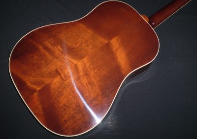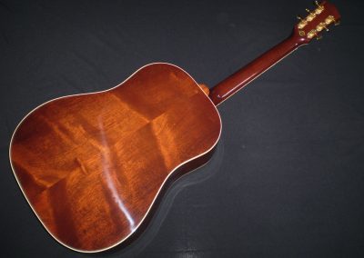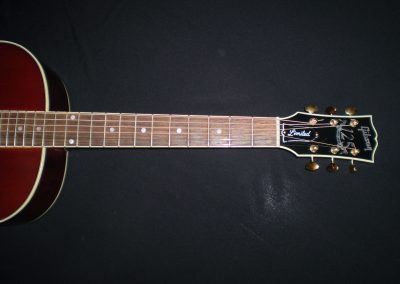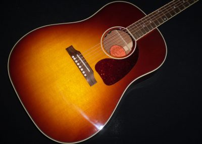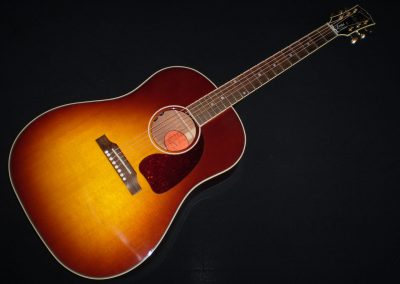 NEW ARRIVAL The J45 is Gibson’s best selling acoustic of all time. First introduced in 1942, this iconic guitar has become the cornerstone of its round-shoulder, dreadnought line. World renowned for its full, balanced tone, warm bass and excellent projection. For Gibson’s 125th Anniversary, their Custom Shop produced a limited run of 125 guitars, to celebrate this landmark. It features a Lutz Spruce top finished in a beautiful Autumn Burst, with stunning flamed Mahogany back and sides and 125th Anniversary headstock inlays. There’s a bound Rosewood fingerboard, a bound headstock, plus gold open back Grover tuners. Tonally it what you’d hope for in a J45, only it’s somehow more polished and more refined. From a playability point of view it oozes quality, very comfortable, balanced and smooth. Visually it’s a stunner, and the 125th Anniversary headstock is very special. Obviously it’s a very collectable guitar, but it’s been made to be played, not kept in a glass cabinet. In it’s 5 years the tone has clearly opened up and is already starting to mature. The guitar has an LR Baggs VTC pickup fitted, and comes in an anniversary hard case with a limited edition certificate.