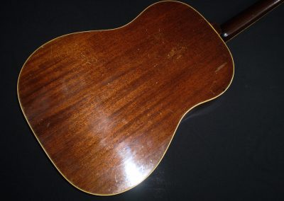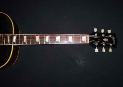 NEW ARRIVAL Possibly the most recognisable of all Gibson acoustics, the J160E was made famous by the Beatles, and as such if you want to recreate that unique sound – this is the only guitar that gets you there. There have been various modern reissues by Gibson that have the look, but only a genuine vintage example will have the true sound, character, vibe and feel. Both acoustic and plugged in, it has ‘that’ sound. The guitar feels very comfortable to play, with an easy action – it’s in good condition for a 66 year old guitar. The top has been oversprayed because there are some cracks in the lacquer on the shoulders, there’s some sinking around the soundhole, and one repaired back crack. There’s a replacement Lindy Fralin pickup which sounds very authentic – possibly because it’s on an original body. The tuners are original, but one of the buttons has been replaced. All in all it’s a fantastic playing and sounding guitar, and just feels like a piece of musical history. It comes in a non original hard case.